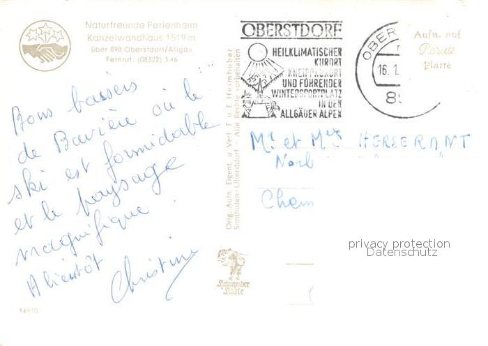 72968779 alte Postkarte Oberstdorf Kanzelwandhaus mit Hammerspitze Winterlandschaft Allgaeuer Alpen postalisch gelaufen Erhaltung siehe scans [FriedD77] KatCode: 11110009780133