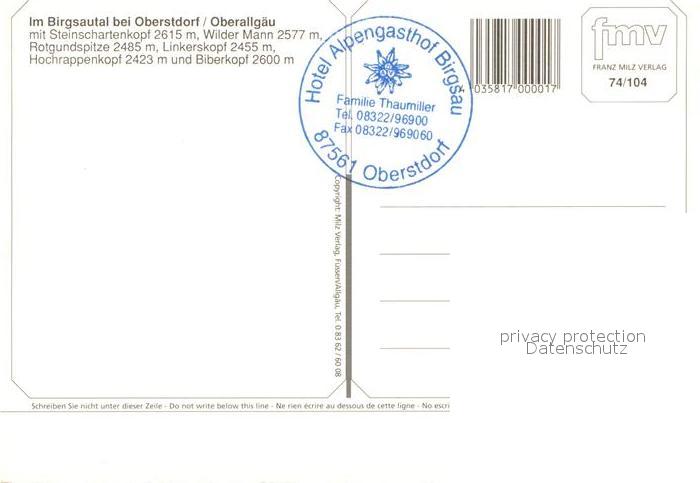 72961306 Oberstdorf Kapelle im Birgsautal mit Steinschartenkopf postalisch nicht gelaufen Erhaltung siehe scans [WerneD78] KatCode: 11110009780133