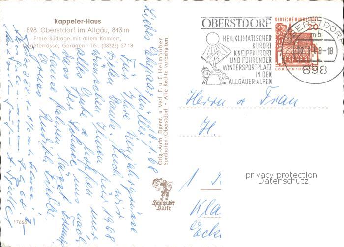 72010243 alte Postkarte Oberstdorf Kappeler Haus postalisch gelaufen Erhaltung siehe scans KatCode: 11110009780133