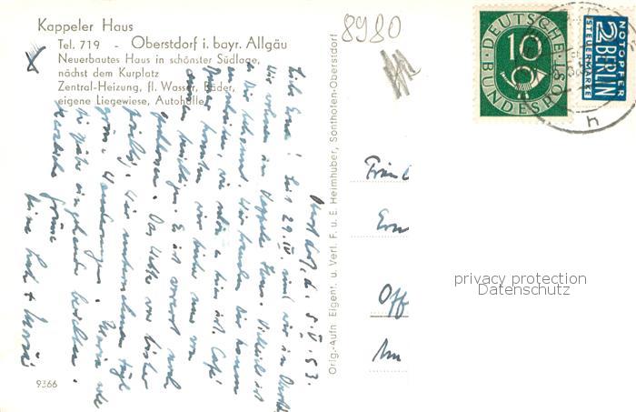 73763841 alte Postkarte Oberstdorf Kappeler Haus postalisch gelaufen Erhaltung siehe scans [WerneD78] KatCode: 11110009780133