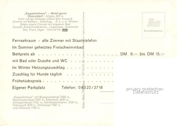 73042548 Oberstdorf Kappelerhaus Hotel garni Alpenpanorama Fliegeraufnahme postalisch nicht gelaufen Erhaltung siehe scans [FriedD77] KatCode: 11110009780133