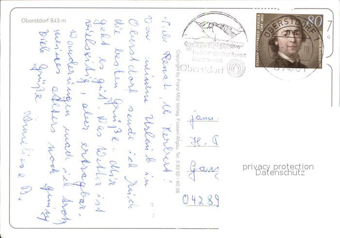 alte Postkarte Oberstdorf Kegelkopf Kratzer Fuerschiesser postalisch gelaufen Erhaltung siehe scans