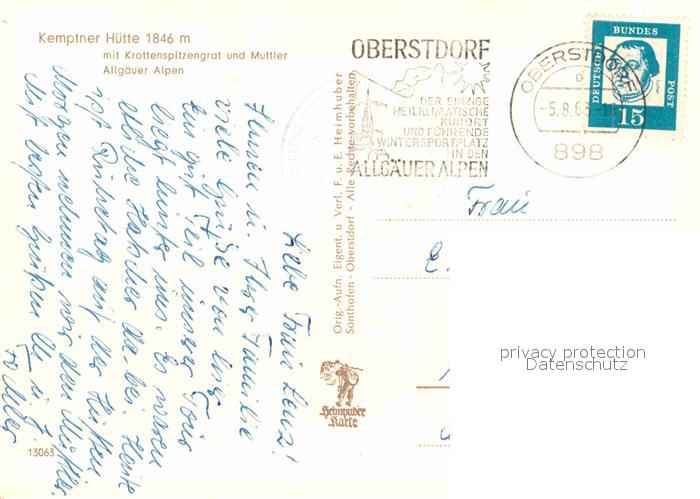 72821167 alte Postkarte Oberstdorf Kemptner Huette postalisch gelaufen Erhaltung siehe scans [AndreD76] KatCode: 11110009780133