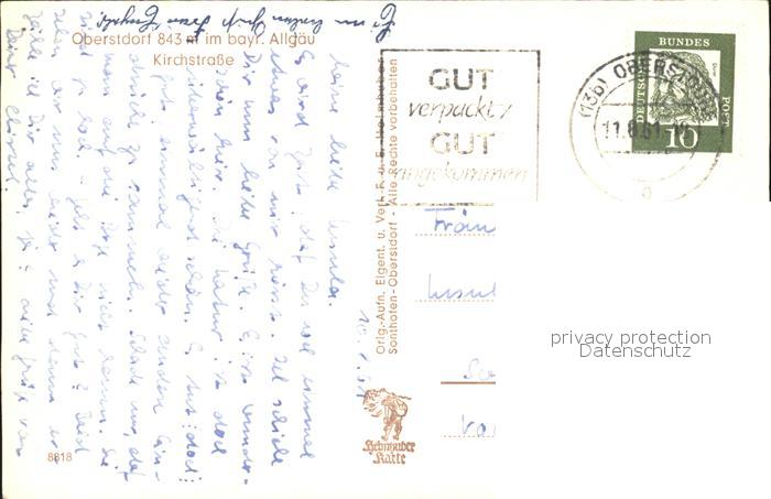31714058 alte Postkarte Oberstdorf Kirchstrasse postalisch gelaufen Erhaltung siehe scans KatCode: 11110009780133