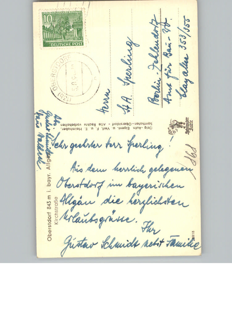 31172752 Oberstdorf Kirchstrasse postalisch nicht gelaufen KatCode: 11110009780133