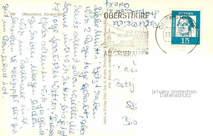 72884707 alte Postkarte Oberstdorf Kirchstrasse postalisch gelaufen Erhaltung siehe scans [PaolaD17] KatCode: 11110009780133