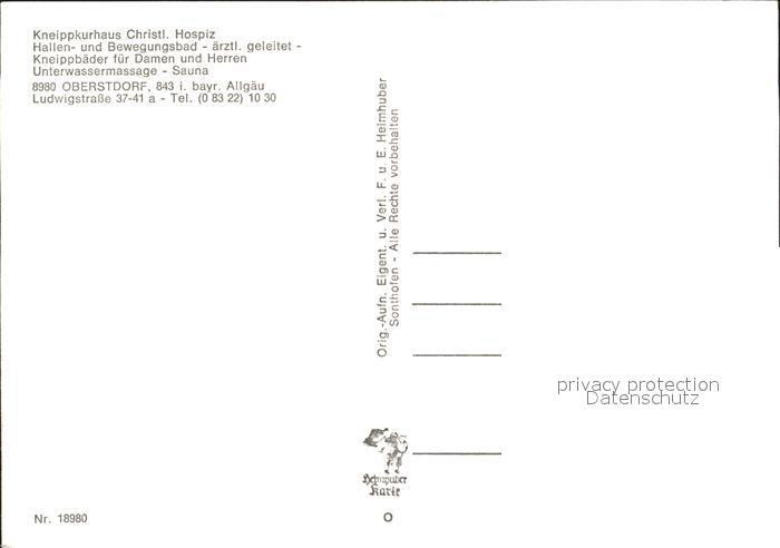72067122 Oberstdorf Kneippkurhaus Christl Hospiz Restaurant Gastraum Bar Hallenbad postalisch nicht gelaufen Erhaltung siehe scans KatCode: 11110009780133