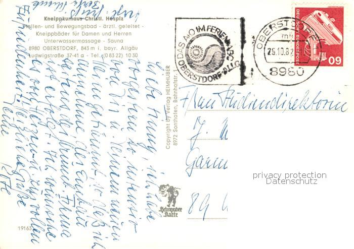 73147483 alte Postkarte Oberstdorf Kneippkurhaus Christliches Hospiz Alpen postalisch gelaufen Erhaltung siehe scans [FriedD77] KatCode: 11110009780133