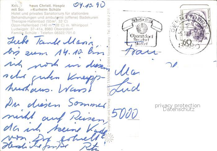 72511556 alte Postkarte Oberstdorf Kneippkurhaus Christliches Hospiz postalisch gelaufen Erhaltung siehe scans KatCode: 11110009780133