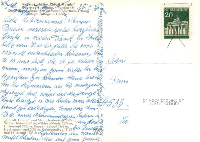 73163744 Oberstdorf Kneippkurheim Christliches Hospiz Allgaeuer Alpen postalisch nicht gelaufen Erhaltung siehe scans [FriedD77] KatCode: 11110009780133
