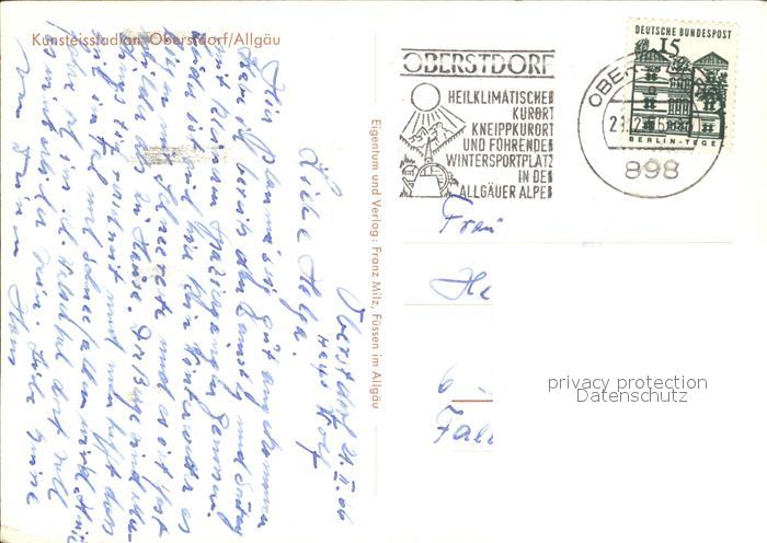 72432613 alte Postkarte Oberstdorf Kunsteisstadion postalisch gelaufen Erhaltung siehe scans KatCode: 11110009780133