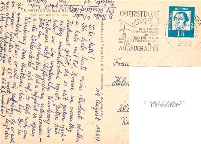 72954666 alte Postkarte Oberstdorf Kur- und Kurmittelhaus postalisch gelaufen Erhaltung siehe scans [PaolaD17] KatCode: 11110009780133