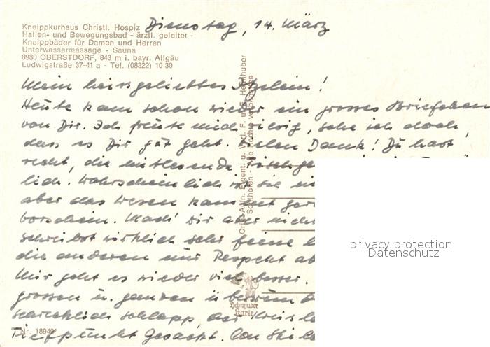 73173141 Oberstdorf Kurhaus Christl. Hospiz postalisch nicht gelaufen Erhaltung siehe scans [LiesaD40] KatCode: 11110009780133