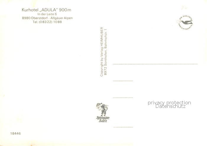 73785611 Oberstdorf Kurhotel Adula m. Hallenbad postalisch nicht gelaufen Erhaltung siehe scans [LiesaD40] KatCode: 11110009780133