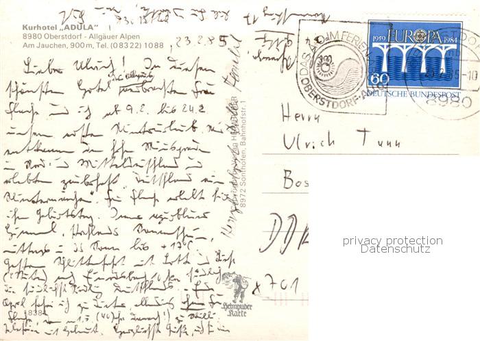 73834587 alte Postkarte Oberstdorf Kurhotel Adula Winterpanorama Allgaeuer Alpen postalisch gelaufen Erhaltung siehe scans [FriedD77] KatCode: 11110009780133