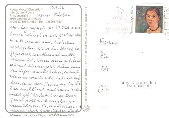 73647956 alte Postkarte Oberstdorf Kurparkhotel Oberstdorf Zimmer Gaststube postalisch gelaufen Erhaltung siehe scans [WerneD78] KatCode: 11110009780133