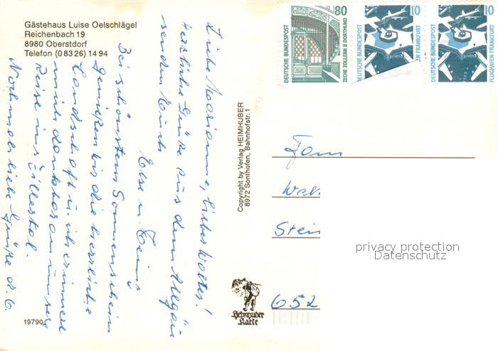 73646514 Oberstdorf Landschaftspanorama Allgaeuer Alpen Gaestehaus Oelschlaegel postalisch nicht gelaufen Erhaltung siehe scans [FriedD77] KatCode: 11110009780133