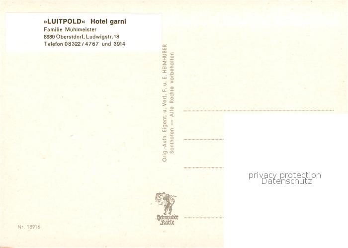 73800937 Oberstdorf Luitpold Hotel garni postalisch nicht gelaufen Erhaltung siehe scans [WerneD78] KatCode: 11110009780133