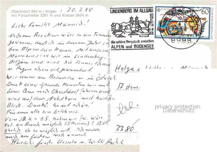 72886246 alte Postkarte Oberstdorf mit Fuerschiesser und Kratzer postalisch gelaufen Erhaltung siehe scans [LiesaD40] KatCode: 11110009780133