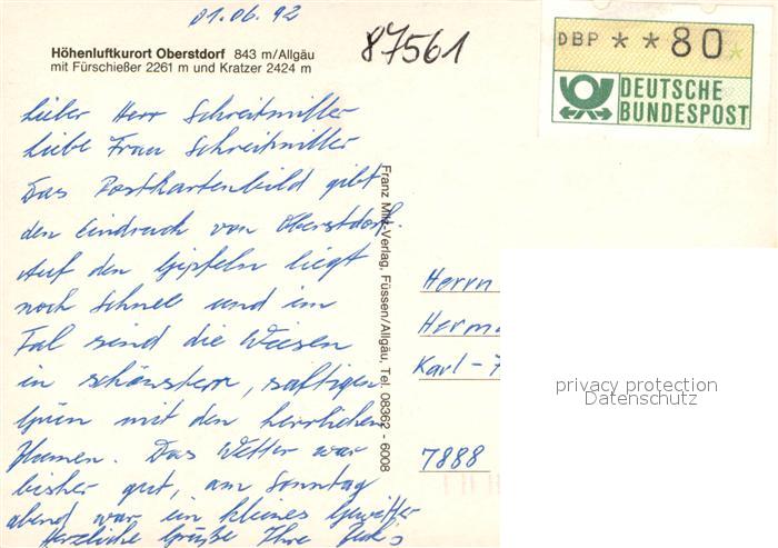 73227320 alte Postkarte Oberstdorf mit Fuerschiesser und Kratzer postalisch gelaufen Erhaltung siehe scans [LiesaD40] KatCode: 11110009780133