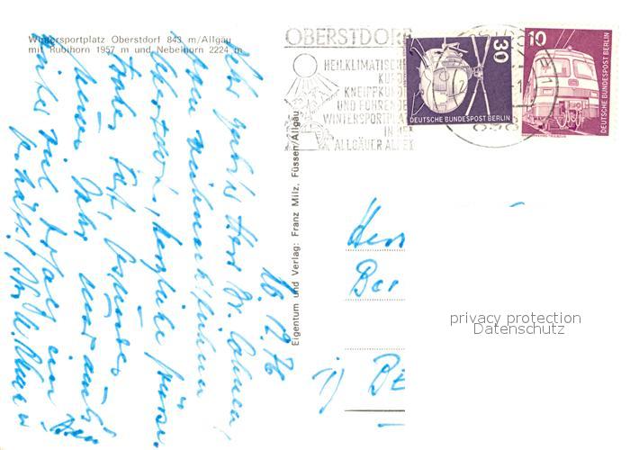 73597215 alte Postkarte Oberstdorf mit Rubihorn und Nebelhorn postalisch gelaufen Erhaltung siehe scans [WerneD78] KatCode: 11110009780133