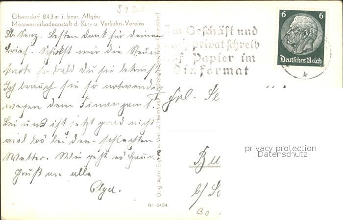 31702475 alte Postkarte Oberstdorf Moorwasserbadeanstalt postalisch gelaufen Erhaltung siehe scans KatCode: 11110009780133
