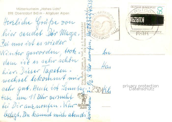 73020574 Oberstdorf Muetterkurheim Hohes Licht postalisch nicht gelaufen Erhaltung siehe scans [WerneD78] KatCode: 11110009780133