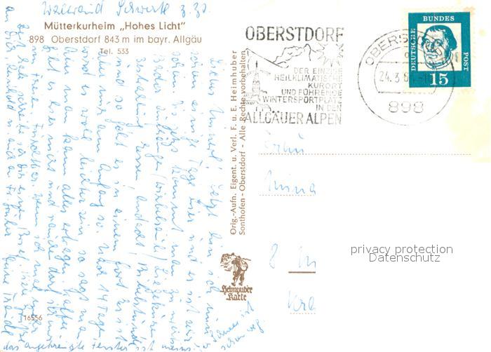 73738872 alte Postkarte Oberstdorf Muetterkurheim Hohes Licht im Winter Allgaeuer Alpen postalisch gelaufen Erhaltung siehe scans [FriedD77] KatCode: 11110009780133