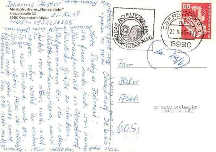 73252468 alte Postkarte Oberstdorf Muetterkurheim Hohes Licht postalisch gelaufen Erhaltung siehe scans [WerneD78] KatCode: 11110009780133