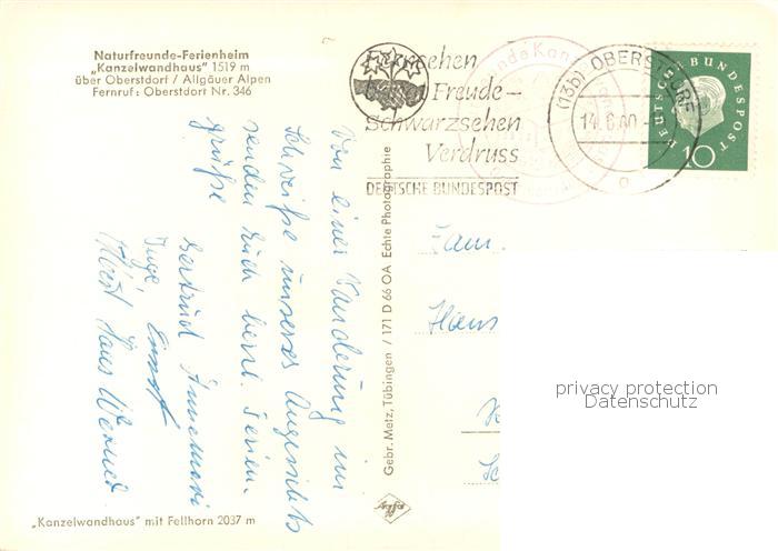 73785041 alte Postkarte Oberstdorf Natrufreunde-Ferienheim Kanzelwandhaus Aussenansicht postalisch gelaufen Erhaltung siehe scans [LiesaD40] KatCode: 11110009780133