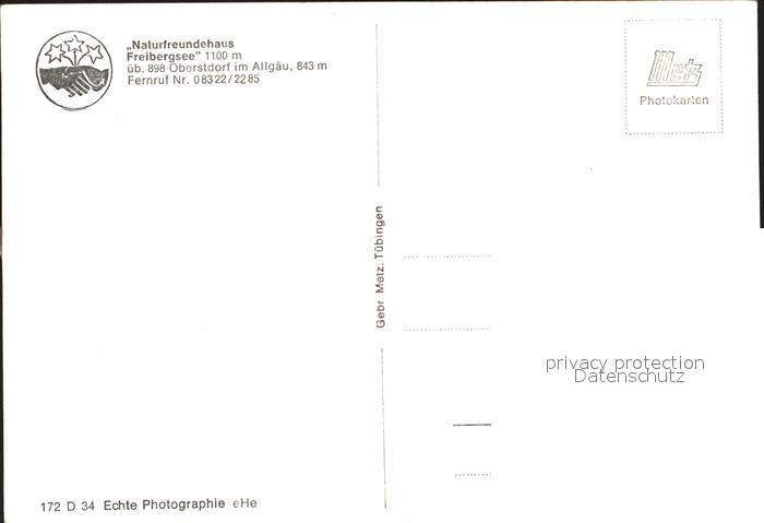 72092898 Oberstdorf Naturfreundehaus Freibergsee Restaurant postalisch nicht gelaufen Erhaltung siehe scans KatCode: 11110009780133