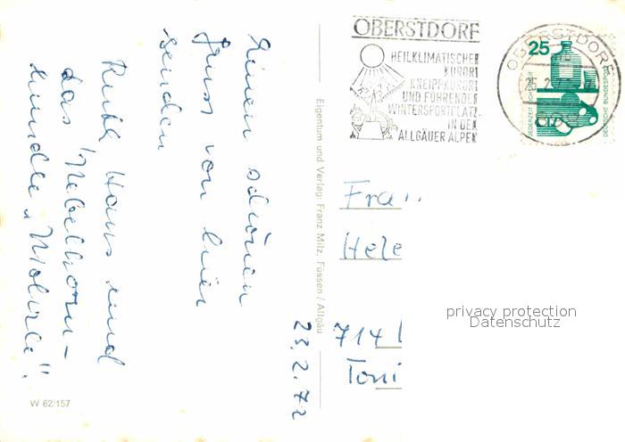72790646 alte Postkarte Oberstdorf Nebelhorn postalisch gelaufen Erhaltung siehe scans [LiesaD40] KatCode: 11110009780133