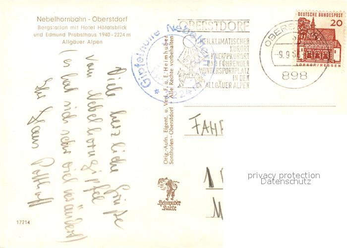 73334490 alte Postkarte Oberstdorf Nebelhorn Bergstation postalisch gelaufen Erhaltung siehe scans [WerneD78] KatCode: 11110009780133