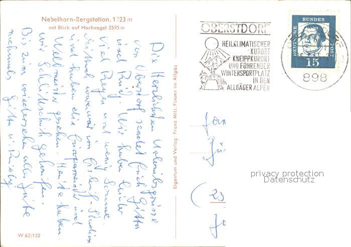 72294623 alte Postkarte Oberstdorf Nebelhorn-Bergstation Hochvogel postalisch gelaufen Erhaltung siehe scans KatCode: 11110009780133