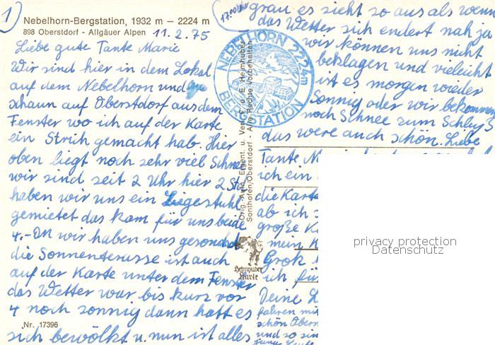 73787544 alte Postkarte Oberstdorf Nebelhorn Bergstation postalisch gelaufen Erhaltung siehe scans [WerneD78] KatCode: 11110009780133