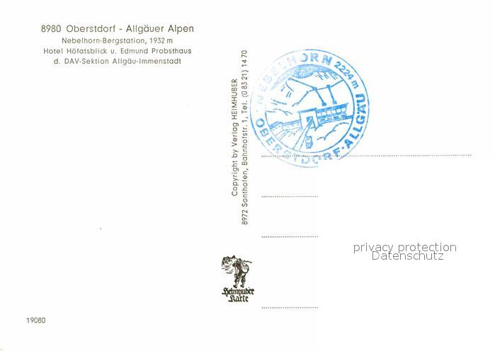 72795342 Oberstdorf Nebelhorn-Gipfel Wengenkopf Hotel Hoefatsblick Edmunds Probsthaus postalisch nicht gelaufen Erhaltung siehe scans [NatalD47] KatCode: 11110009780133