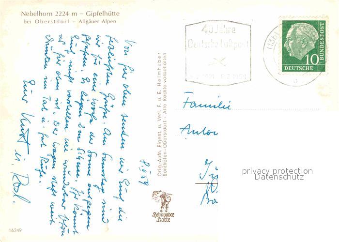 72901745 alte Postkarte Oberstdorf Nebelhorn Gipfelhuette Gebirgspanorama im Winter postalisch gelaufen Erhaltung siehe scans [FriedD77] KatCode: 11110009780133