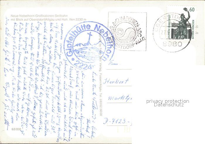 71892578 alte Postkarte Oberstdorf Nebelhorn Grosskabinen Seilbahn Bergbahn Hoher Ifen Sommerpanorama postalisch gelaufen KatCode: 11110009780133
