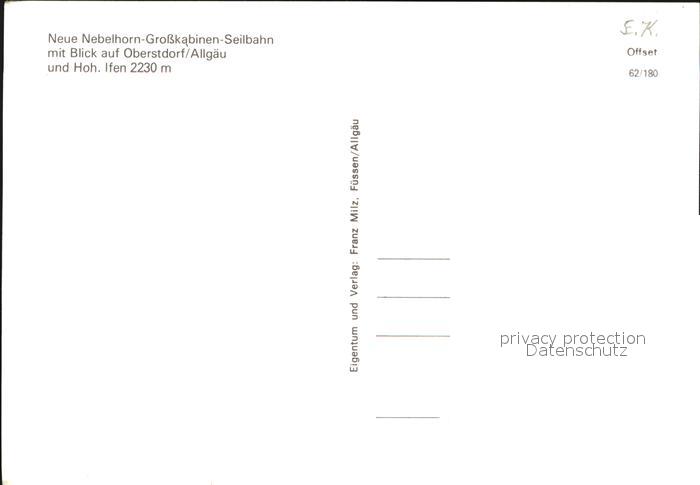 72557760 Oberstdorf Nebelhorn Grosskabinenseilbahn Hoher Ifen postalisch nicht gelaufen Erhaltung siehe scans [KathaD79] KatCode: 11110009780133