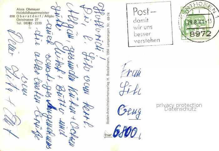 72764274 alte Postkarte Oberstdorf Nebelhorn Holzschnitzerei Alois Ohmayer postalisch gelaufen Erhaltung siehe scans [LiesaD40] KatCode: 11110009780133