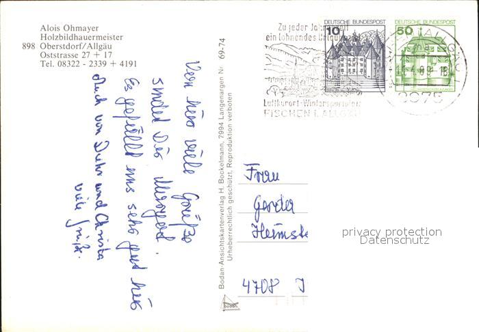 alte Postkarte Oberstdorf Nebelhorn Holzschnitzerei postalisch gelaufen Erhaltung siehe scans