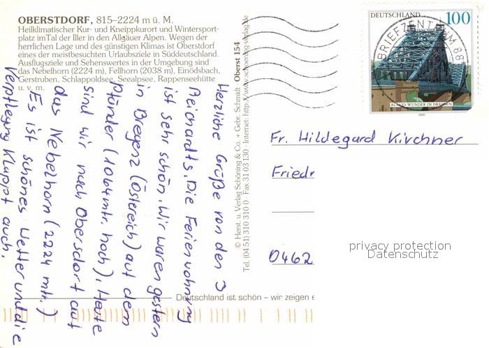 72859270 alte Postkarte Oberstdorf Nebelhorn Panorama Fellhorn Bergstation Gerstruben Kirchstrasse Breitachklamm Marktplatz postalisch gelaufen Erhaltung siehe scans [WerneD78] KatCode: 11110009780133