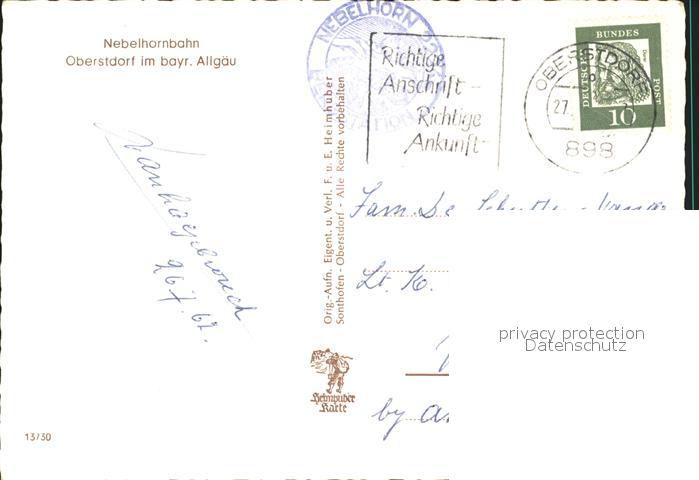 71926431 alte Postkarte Oberstdorf Nebelhornbahn postalisch gelaufen Erhaltung siehe scans KatCode: 11110009780133
