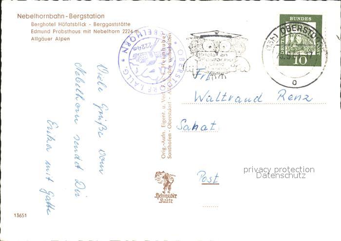 72390235 alte Postkarte Oberstdorf Nebelhornbahn-Bergstastion postalisch gelaufen Erhaltung siehe scans KatCode: 11110009780133