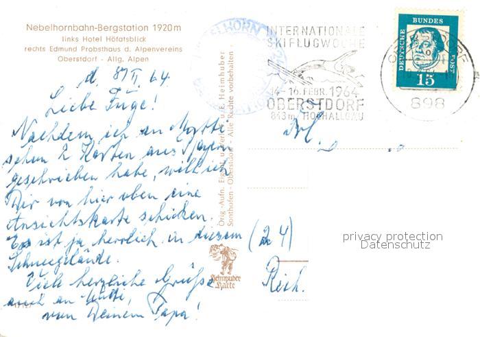73660733 alte Postkarte Oberstdorf Nebelhornbahn Bergstation Hotel Hoefatsblick Edmund Probsthaus postalisch gelaufen Erhaltung siehe scans [WerneD78] KatCode: 11110009780133