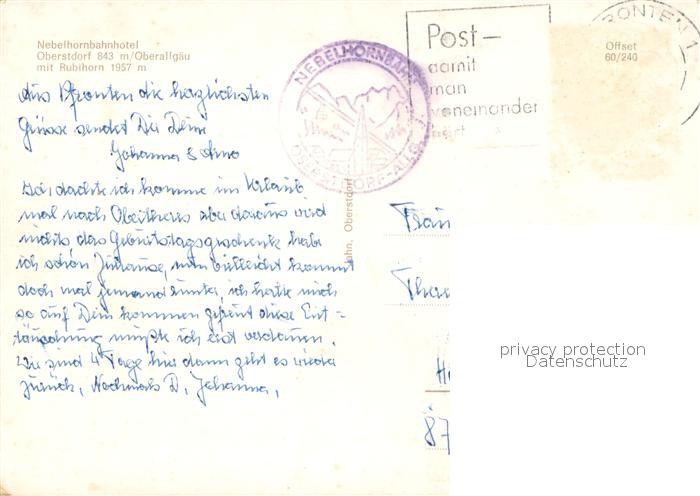 73717978 alte Postkarte Oberstdorf Nebelhornbahnhotel mit Rubihorn postalisch gelaufen Erhaltung siehe scans [WerneD78] KatCode: 11110009780133
