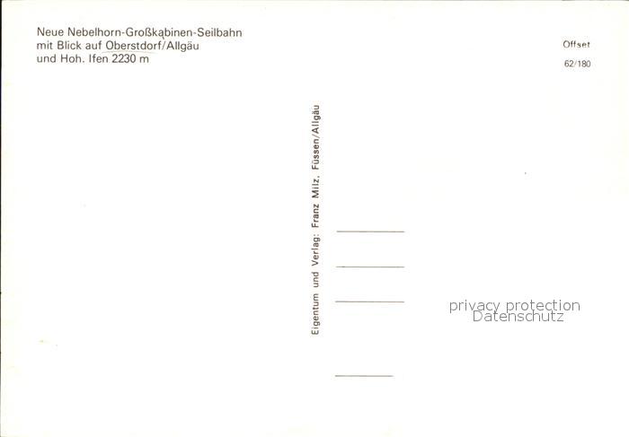 72495174 Oberstdorf Neue Nebelhorn Grosskabienen Seilbahn postalisch nicht gelaufen Erhaltung siehe scans KatCode: 11110009780133