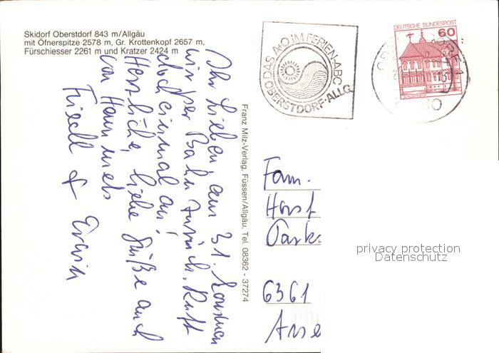 72550607 alte Postkarte Oberstdorf oefnerspitze Grosser Krottenkopf Fuerschiesser Kratzer postalisch gelaufen Erhaltung siehe scans [KathaD79] KatCode: 11110009780133