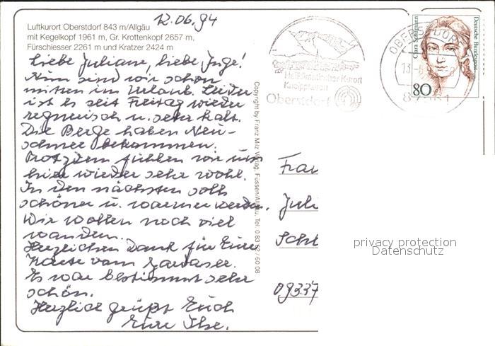 72418521 alte Postkarte Oberstdorf Ortsansicht Luftkurort mit Kirche Allgaeuer Alpen Wappen postalisch gelaufen Erhaltung siehe scans KatCode: 11110009780133