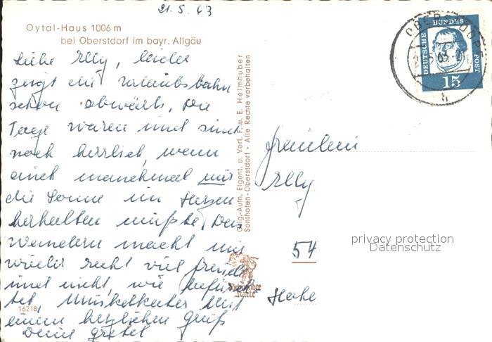 72180979 alte Postkarte Oberstdorf Oytal Haus postalisch gelaufen Erhaltung siehe scans KatCode: 11110009780133